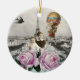 Vintage Eiffel Tower Pink Roses Hot Air Balloon Ceramic Tree Decoration