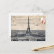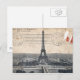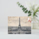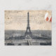 This vintage postcard features a panoramic view of the Eiffel Tower. This 1912 postcard is yellowed with age and bears the postmark as well as a stamp that is almost peeled away.