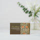 Vintage brown business card featuring orange flowers pattern.