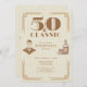 Celebrate turning fifty in true classic style with this vintage-themed birthday invitation. Set on a textured light-brown backdrop, the design features refined vintage corner borders and a striking layout with a distinguished gentleman graphic on one side and a whiskey bottle with glass on the other. The bold “50 & classic” headline in vintage lettering anchors the design, with editable party details displayed in a simple, modern sans serif font for effortless personalization. The full vintage-brown color palette ties it all together for a refined, masculine look.