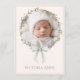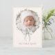 Sweet pink and sage colors were used to create this lovely announcement. Baby photo has a coordinating delicate greenery and pink wreath. Add your beautiful baby girls photo. The back has a sweet companion repeat pattern and an elegant oval frame with baby stats. Perfect for a girl birth announcement.
