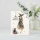 Step into a world of mystery and magic with this vintage, elegant Halloween greeting card. At the centre, a modern dressed witch exudes grace and enchantment, while a cobweb with dangling spiders adds a touch of eerie charm above. In the corner, a black cat perches atop skulls, completing this captivating, gothic scene.