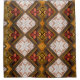 Colourful retro wool embroidery in 60´s or 70´s style. Green, orange, white, brown and red in different shades. Photography.