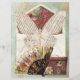 Vintage open envelope with insert, Paper butterfly, Victorian fan, hat box over gold and green old paper. Gold and green old paper on reverse side