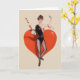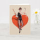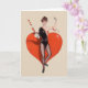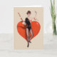 Retro / Vintage Fencing greeting card. Lovely woman epee fencer standing en garde in front of a large heart. Perfect for Valentine's Day or for any occasion.