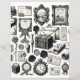 Double-sided scrapbook paper featuring vintage themed ephemera in simple black and white line art to help you with your cut and collage paper crafting projects. Perfect for all types of papercraft from scrapbooking to junk journalling.