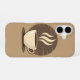 Retro illustration of an espresso cup with rounded steam and a warm circular block.