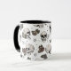 Hand-drawn in black ink, this elegant gothic Halloween mug features a beautiful pattern of skulls, roses and spiderwebs in cream and blush tones.