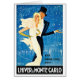 Vintage European travel poster advert. Fabulously dressed couple with her pink formal gown and sea-green gloves, his tux, top hat, and spectacle jet setting to Monte Carlo in Winter on the French Riviera. A perfect vintage art deco gift & messages for the collector of travel poster art, and the lover of art and fashion!
