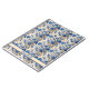 Vintage floral pattern with various shades of blue flowers and leaves against a light beige background. "toile de Jouy" in France, this design is perfect for original vintage decoration. The flowers are intricately designed, showcasing different types of blossoms and foliage, including large peonies and smaller buds. The use of blue tones contrasts beautifully with the beige background, creating a visually appealing and elegant design. With a relief effect. Personalise it with your name.