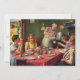 Vintage illustration daily life scene with a family drinking coffee and eating a meal together in their kitchen on a farm. Children, parents and grandparents all gather around the table.
