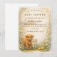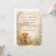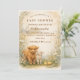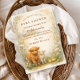 A charming countryside design featuring a fluffy calf, a sweet little lamb, and tiny yellow chicks nestled among soft meadow wildflowers. The warm parchment background and muted earth tones create a cosy, rustic atmosphere with a gentle storybook feel. Delicate greenery frames the layout while the farm animal illustration adds warmth and personality. Perfect for a neutral rural-themed celebration with classic farmhouse charm.