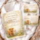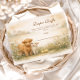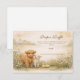 A charming countryside design featuring a fluffy calf, a sweet little lamb, and tiny yellow chicks nestled among soft meadow wildflowers. The warm parchment background and muted earth tones create a cosy, rustic atmosphere with a gentle storybook feel. Delicate greenery frames the layout while the farm animal illustration adds warmth and personality. Perfect for a neutral rural-themed celebration with classic farmhouse charm.