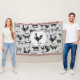 A rustic collage of vintage farm animals on a white/ grey toned textured look background and rooster with customised name in the centre. A great design for country barn lovers. The black and white illustrations of farm animals include sheep dog, sheep, goat, farm cat, cow, pig, turkey, chickens and much more. An ideal rustic themed design for your home or gift for someone special. Customise the text and make it your own.