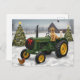 Vintage Farm Tractor Dog Cat Holiday Postcard