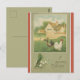 This postcard features a vintage illustration of a farm with chickens with an Easter greeting with lily-of-the-valley flowers below.