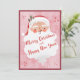 Vintage Farmhouse Pink Script Santa Clause Holiday Card