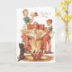Retro / Vintage Father's Day greeting card. Dad is sitting in his armchair and reading the newspaper while mum walks by with a freshly baked cake, puppy brings slippers, and son lights his pipe! An old fashion Father's Day!