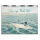 Twelve-month, vintage fish art calendar. This spiral bound, two-page, wall calendar is filled with beautiful illustrations from artist of long ago. What you will find inside are hand-drawn images of some popular fish species such as bream, pompano, snapper, snook, and a shark, drawn in lifelike colours. The calendar can be customised in many ways, including which holidays to show. Made as the Medium size, the images may not fit as well on other styles or sizes. The calendar will print as you see it. Choose the number grid style you like, big numbers are in the sample. Any fisherman, or woman, would appreciate these antique images.