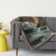 Throw blanket with a vintage image of a fisherman in a South Dakota stream early 1900s.
