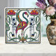 Step back in time with this stunning Art Deco ceramic tile, featuring a vibrant flamingo at its center. The design is adorned with elegant floral motifs and intricate geometric patterns in a rich palette of jewel tones, reminiscent of the Roaring Twenties. This tile is perfect for adding a touch of vintage sophistication and bold color to any space, from a kitchen backsplash to a statement wall. Its unique art nouveau inspired elements will surely be a conversation starter.