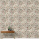 Romantic vintage-style wallpaper featuring birds, butterflies, and blooming florals in soft pinks, greens, and creams. A timeless and elegant botanical design.