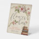 Vintage Floral Books Bridal Shower Flower Bar Pedestal Sign