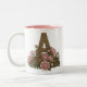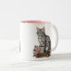 Create your own unique and elegant mug with this beautiful vintage-inspired monogram design featuring a detailed tabby cat illustration surrounded by soft floral elements.