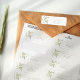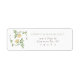 This custom return address label marries the timeless elegance of vintage floral design with modern practicality. The label features a charming wreath of green leaves and golden yellow roses, creating a delicate frame around the initials, which adds a personalised touch reminiscent of traditional monograms. The clear, legible font presents the return address in a classic layout, ensuring ease of use while maintaining a sophisticated aesthetic. These labels are perfect for adding a bespoke element to your wedding correspondence, inspired by the naturalistic beauty celebrated in the Arts and Crafts movement.