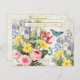 Personalise this beautiful vintage floral postcard with your name or text of your choice on the cover in elegant typography in gold colour and matching borderline with flowers in pink, yellow, blue, and red on an antique ivory background. The back side has the look of an antique postcard. Designed by © Tim Coffey.