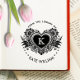 Custom Ex Libris Stamp features a vintage floral heart frame with a monogram and classic sans-serif fonts. Personalise this beautiful monogram from the library of custom rubber stamps with your name.