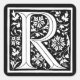 This simple letter ‘R' is framed within a very pretty black and white floral motif.