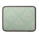 This Rickshaw Macbook Pro Sleeve has a muted aqua blue vintage damask pattern in the background with a branch with lots of coral coloured flowers all over. In the background, there are soft brown and white swirls behind the branch. To the right, there is a bird flying.