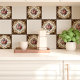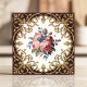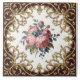 Add a touch of romantic, vintage charm to your home with this beautiful ceramic tile. The design features a central bouquet of pink roses and green foliage, surrounded by an elaborate, golden-brown damask-style border on a cream background. This tile is perfect for creating a classic and elegant atmosphere in bathrooms, kitchens, on fireplace surrounds, or as an accent piece. Ideal for upgrading any space.