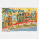 Vintage Florida postcard illustration: Greetings from Florida, The Land of Sunshine. The letters are filled with images from old Florida and the retro colors background are rich with historic Florida kitsch.
