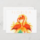 Vintage Florida travel postcard featuring a vintage pink flamingos found in Florida print with modern mid century typography.