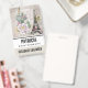 A pretty collage of painted flowers and vintage postmarks with a black illustration of the eiffel tower. Charming and chic design.