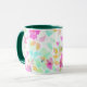 This floral mug features a vintage pattern of flowers. I processed this image with a watercolor painterly style for an artsy flair. The handle and inside of the cup are green to complement the artwork.