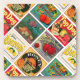 Vintage Food Labels Colourful Pattern Coaster