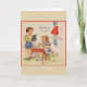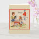 Retro / Vintage Birthday greeting card. Adorable little boy and girl and their puppy having a tea party! Greetings On Your 4th Birthday! Sweet Birthday Card for a four year old!