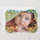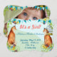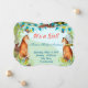 It's a Girl with Aqua and Teal and just a hint of pink - cute pink flowers on the back with the photo of your baby girl! Vintage Fox Lace Vintage Birdcage, Teal Buntings, Swirly Flowers and a Gold Vintage Birdcage - Personalised with your new baby girl photo!
