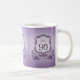 90th Birthday Celebration mug with a large number (not customisable) into vintage frame and ribbon (Birthday celebration: not customisable). Only name is customisable. You can easily change text colour, font, size and position by clicking the customise button.