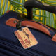 I was happy with the acrylic tag but it came with a thin leather strap to attach the tag to luggage (like a cat collar). I replaced the strap with a metal ring off of a key ring as the leather strap would come undone or break easily as luggage is sometimes handled without much care by airlines. Printing is great. Colours and positioning of the design I put on the tag were perfect. Very pleased.
