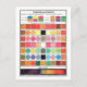 This postcard is a reproduction of a vintage table of colours for artists.