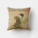 This throw pillow is a replica of a vintage floral French postcard featuring a frog riding bicycle and pink roses. This is an ideal gift for a vintage lover. Shabby chic style for your home decor.
