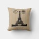 Vintage French postcard with the Eiffel Tower on a burlap style background.
