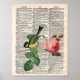 A vintage dictionary print featuring a beautiful french botanical illustration of a rose and bird will make a wonderful addition to any home decor,. © Julie McIver