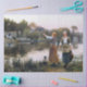 The Water Carries 1892 by painter Daniel Ridgway Knight portrays a vintage french woman carrying water while the other woman communicates across stream to a french man on a white horse.