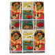 Fun pattern features a variety of fruit advertisement labels from early 20th century.