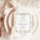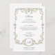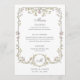 These stunning and beautiful wedding menu cards or rehearsal dinner cards feature an antique style, whimsical baroque illustrated frame decorated with colourful flowers and leaves in subtle shades of peach, pink, purple, green, and neutrals on a white background. A whimsical look that also recalls the Art Nouveau style or regency elegance. Elegant calligraphy and classic grey text add to the luxe botanical design, and you can add your initial or monogram.